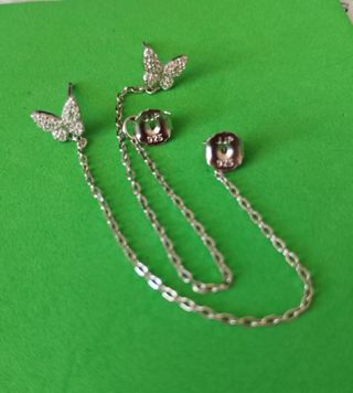 Mariposas de plata, rodio y circonitas blancas. La presión del pendiente va unida por medio de una cadena de 4 cm a la mariposa.