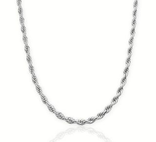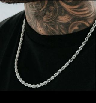 Cadena de estilo cordón fabricada en acero inoxidable. - 54 cm de largo. - 5 mm de grosor. - Acabado plateado brillante. - Diseño trenzado. - Cada unidad a 5€.
