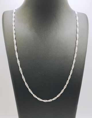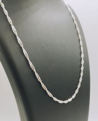 Cadena Singapur plata ley 925. Un diseño clásico, elegante y atemporal, perfecto para regalar en estas fechas especiales a algún ser querido o bien, para darse un capricho. Solo tenemos una pieza por modelo!! Detalles: Peso: 4,14 gr Largo: 50 cm Grosor: 3 mm Posibilidad de pago a plazos, llámanos y te informamos!!! Estaremos encantadas de atenderte en el 626299179, o en nuestra tienda física en Alameda de Colón, 6, Murcia. Ref. 032-02-00252
