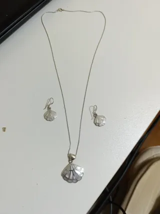 Conjunto de joyería que incluye un collar con colgante y un par de pendientes. - Diseño inspirado en conchas marinas. - Colgante con cadena. - Pendientes a juego.