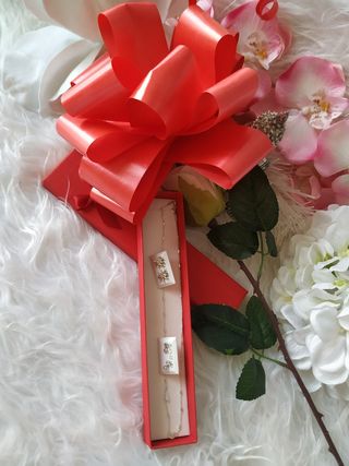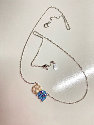 Se compone de : Cadena 2 pares de pendientes ( unos del símbolo del infinito y otros de la estrella de la suerte ) Y estuche . Son monisimos y a estrenar