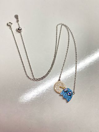 Collar con un diseño inspirado en Pac-Man. - Cadena de plata 925 ajustable - Colgante con detalles en circonitas y esmalte azul. (Podrá ver el vídeo del producto en IG: VINT_APOP )