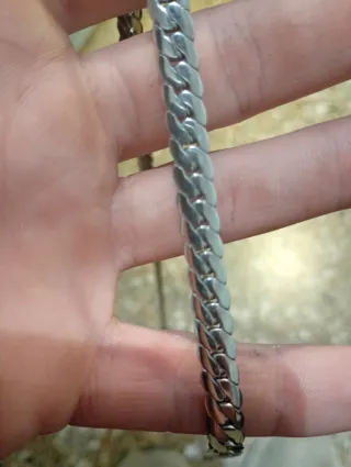 Elegante cadena de plata. - Diseño de eslabones curvos. - Acabado brillante. -Hago pulseras y cademas de plata con ese tipo de eslabones, hábleme según medidas y peso, precio. Un saludo