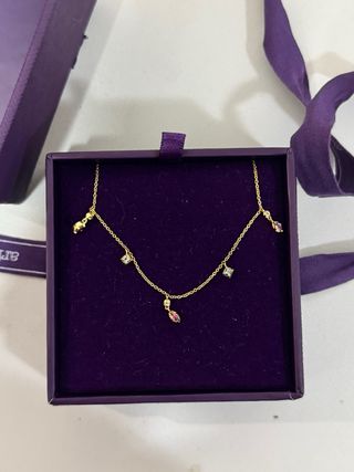 Elegante cadena de Aristocrazy con detalles en plata y oro. Presenta un diseño delicado con pequeñas gemas. - Cadena fina con colgantes. - Combina plata y oro. - Adornada con piedras de colores.