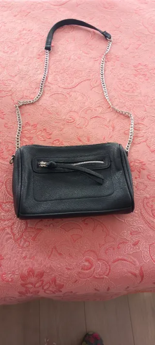 Elegante bolso de mano con detalles metálicos y cadena. - Diseño moderno. - Cadena metálica para llevar al hombro o cruzado. - Incluye etiqueta.