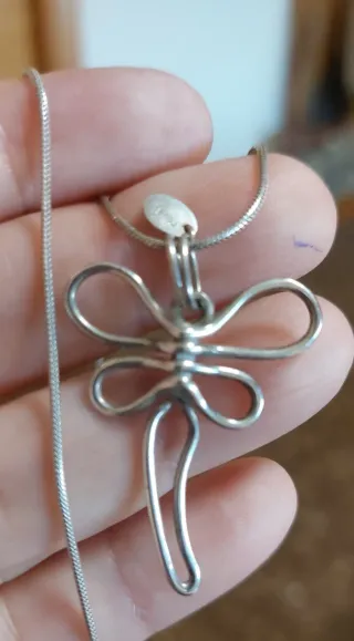 Elegante collar con un delicado colgante. - Diseño de libélula. - Cadena fina tipo serpiente. - Cierre de mosquetón.
