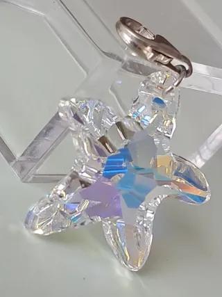 Precioso colgante con forma de estrella de mar, elaborado con cristal austriaco iridiscente y detalles en plata. - Diseño facetado que capta la luz. - Acabado brillante y multicolor. - Incluye enganche de plata ley para cadena o pulsera.