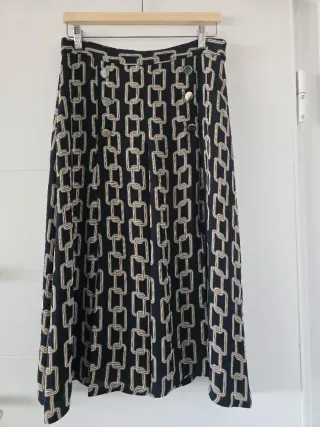 Falda larga de Massimo Dutti con un estampado de cadenas. - Diseño con estampado de cadenas en dorado y negro. - Detalle de botones plateados en la parte superior.