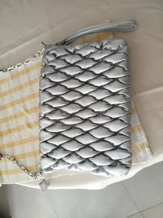 Bolso de mano o bandolera con un diseño acolchado y brillante. - Acabado metalizado. - Cierre de cremallera. - Asa de mano y cadena. - Diseño acolchado.