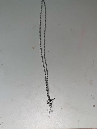 Elegante cadena con colgante en forma de cruz. - Material: Acero inoxidable. - Color del metal: Plateado. A estrenar, cruz de 4.7cm alta, y cadena 60 cm, en caja