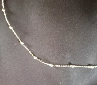 Elegante cadena de Bisuteria Vergara, elaborada en acero quirúrgico con un chapado de plata de ley de 3 micras. Es antialérgica y no se pone fea. - Material: Acero quirúrgico con chapado de plata de ley. - 6mm de ancho del eslabón - 55cm de larga - Grosor del chapado: 3 micras. - Propiedades: Antialérgica, no se decolora.