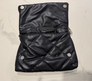 Elegante bolso acolchado, perfecto para ocasiones especiales. - Diseño acolchado con costuras en rombos. - Asa de cadena metálica plateada. - Cierre de solapa. - Tiene algunas manchitas de maquillaje casi imperceptibles