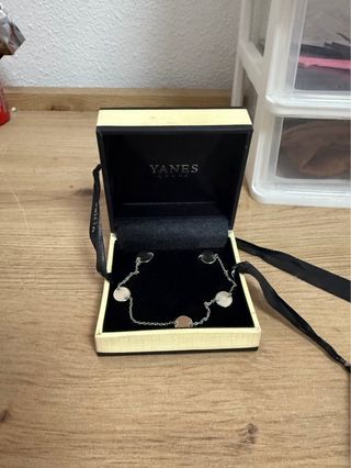 Elegante collar de la marca Yanes Young. Presenta un diseño delicado con varios colgantes circulares. - Diseño con cadena fina. - Colgantes circulares plateados.