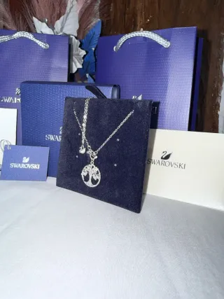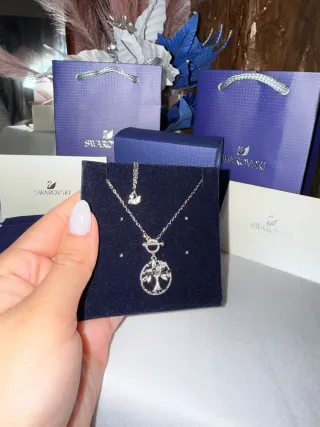 Elegante colgante con diseño de árbol de la vida. - Detalle de cisne en la cadena. - Acabado plateado brillante. - Nuevo a estrenar
