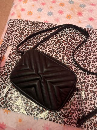 Elegante bolso de mano de Parfois, confeccionado en ante negro. Cuenta con detalles metálicos dorados y una cadena para llevarlo al hombro. - Material: Ante - Color: Negro - Cierre de cremallera - Cadena dorada - Logo metálico frontal