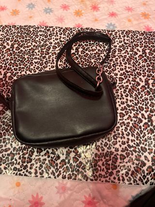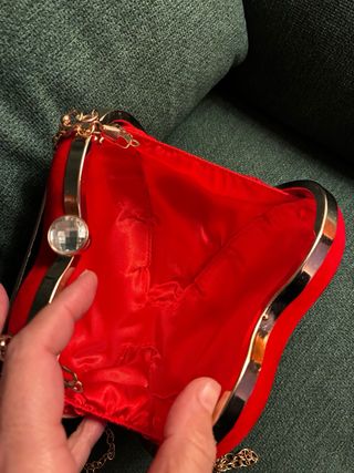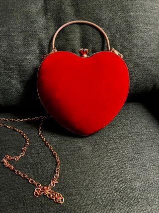 Bolso de mano con forma de corazón. - Asa superior y cadena para llevar cruzado. - Detalle de pedrería en la parte superior. Nunca se ha usado
