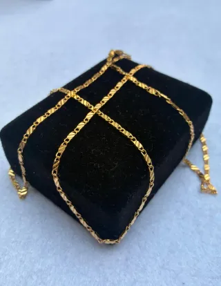 Elegante cadena de cuello bañada en oro, casi nueva y en excelente estado. Su diseño delicado la hace perfecta para cualquier ocasión. - Baño de oro. - Diseño de eslabones finos. solo acepto Bizum o pago en metálico en directo.