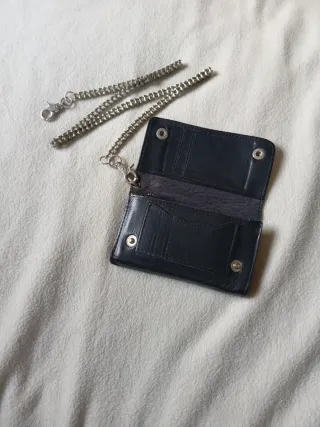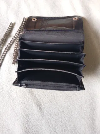 Cartera estilo biker con cadena. Cadena de mini moto. - Diseño plegable. - Compartimentos interiores. - Cierre a presión.