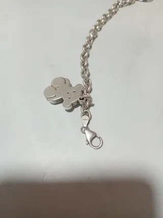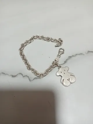 Elegante pulsera de la marca Tous con un adorable charm en forma de oso. - Diseño de cadena. - Acabado plateado.