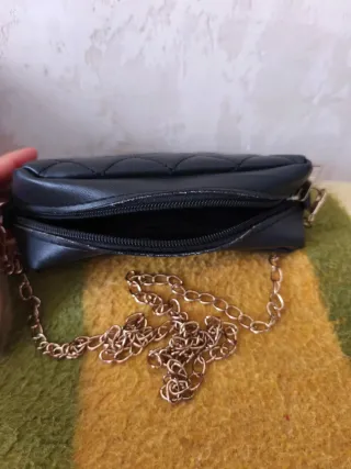 Elegante bolso negro con diseño acolchado y detalles en cadena dorada. - Acabado mate. - Asa de cadena metálica. - Cierre de cremallera. Bolso de piel sintética. Me prefería si comprará 2 bolsos juntos, que están en la última foto.