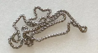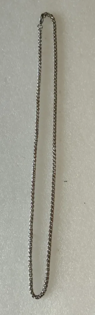 Cadena de bisutería, es de color plateado oscuro. Está en muy buen estado.