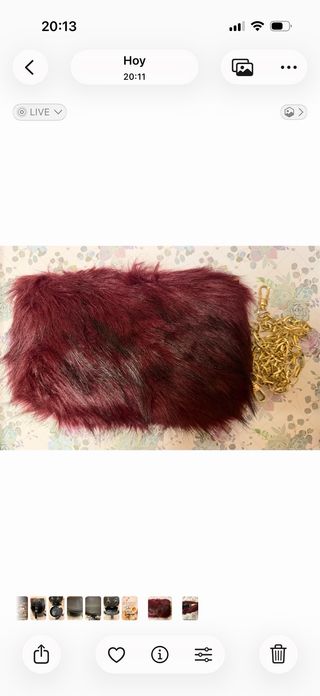 Bolso de pelo color burdeos, y vetas en negro. Cierre con cremallera dorada. Cadena dorada. Medidas (aprox): 27 cm ~ 18 cm Interior piel sintética, con bolsillo pequeño lateral DISPONIBLE TAMBIÉN EN COLOR NEGRO