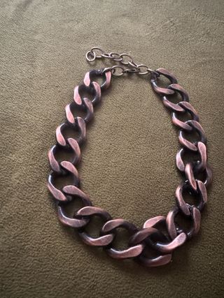 Collar con eslabones grandes y un acabado que combina tonos marrones y dorados. Su diseño robusto le da un toque audaz. - Cadena de eslabones gruesos. - Cierre de mosquetón con cadena de ajuste.