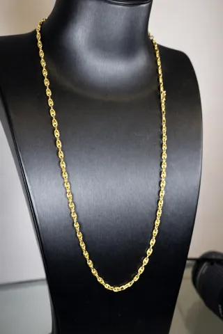 Elegante cadena de oro de 18 quilates.mide 45 centímetros de largo y pesa 3,30 gramos, - Diseño clásico y versátil. - Cierre seguro y funcional.