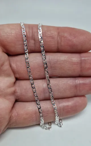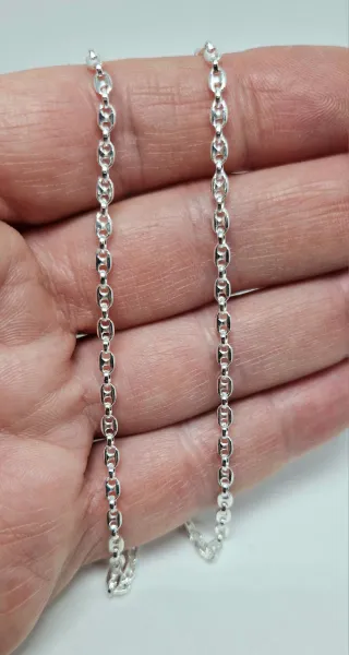 Elegante cadena en plata de ley de 925mm de 45 centímetros y 2mm de ancho. Modelo Gucci. - Diseño de eslabones marineros. - Acabado brillante.