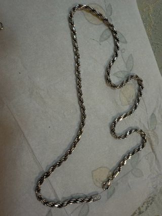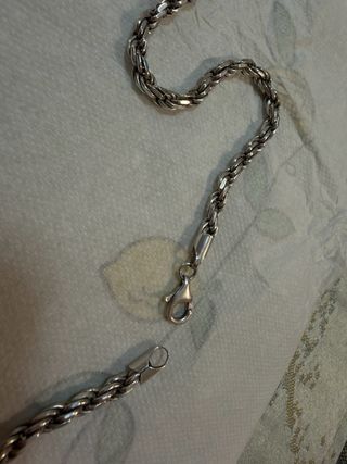 Vendo cordón de plata de ley 925 (contrastada), diseño trenzado tipo rope, muy resistente y elegante. • Longitud: 60 cm • Peso: 40,31 gramos (peso real medido) • Grosor: grueso y sólido (ver fotos para apreciar el volumen) • Cierre: mosquetón de plata con contraste visible • Estado: muy buen estado, poco usado, sin roturas ni desgaste notable. Brillo natural de la plata. Ideal para hombre o unisex #plata925 #plataDeLey #joyeria #collardeplata #joyeriahombre #joyeriamujer #regaloideal #plataitaliana #estiloelegante #joyascordoba