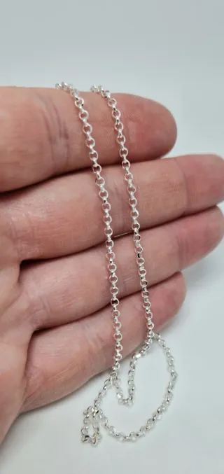 Elegante cadena en plata de ley de 45 centímetros y 3mm de ancho. Es maciza. - Diseño de eslabones. - Acabado brillante. Ref 02126