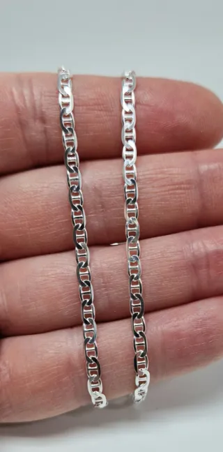 Cadena PLATA 925 mm. Modelo BARBADA diamantada maciza. Grueso 1,5 mm. Largo 50 cm. Peso 5 gr. No baño. Precio no negociable.