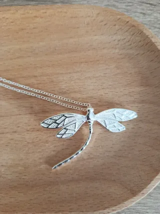 Elegante collar con colgante en forma de libélula. - Diseño detallado de libélula. - Cadena fina y delicada. - Cierre de mosquetón.