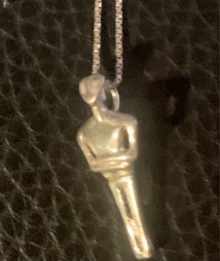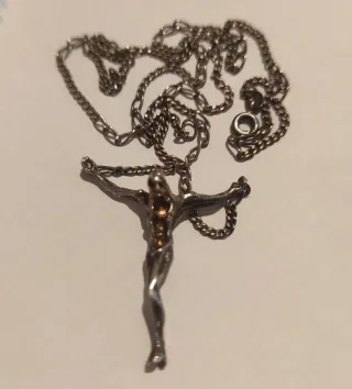 Colgante antiguo de Cristo inspirado en Dalí, con una cadena de 50 cm. - Diseño detallado de la figura. - Cadena de eslabones finos.