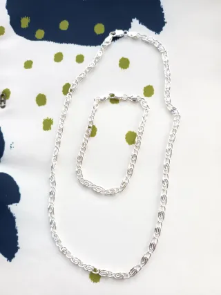 Elegante conjunto de cadena y pulsera. Estupendo para San Valentín ❤️ - Diseño de eslabones entrelazados. - Cierre de mosquetón seguro.