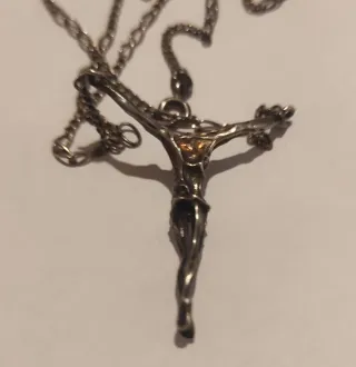 Cadena con colgante de cruz plateada