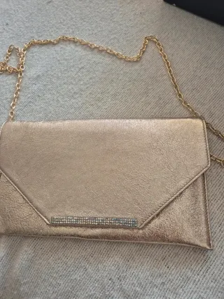 Bolso de mano dorado con cadena