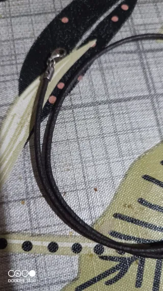 Elegante cordón de piel en color marrón con detalles en plata. - Material: Piel y plata. - Color: marrón y plata.