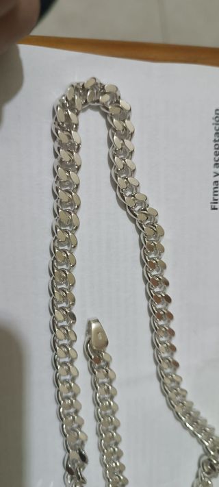 cadena de plata de ley de 181gramos maciza bestial mide 60cm eslabol de ancho 9.5 mm se puede cortar para la medida deseada,mas barato logicamente abstenerse pesados,hecha a mano,si no te interesa realmente no me des la chapa