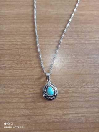 Preciosos cadena y colgante de turquesa. Fino, delicado y femenino. Sello 925. Una preciosidad. Se entrega en cajita para regalo. #(regalos, complementos, joyas, collar, gargantilla, choker, cordón, pulsera, brazalete, tobillera, anillo, sortija, alianza, bisutería, vintage, antigüedades, crema, maquillaje, sérum, gemas, piedras preciosas, piedras semipreciosas, minerales, calcedonia, aguamarina, lapislázuli, ónix, cianita, citrino, rodocrosita, ámbar, ópalo, brillantes, diamantes, oro, platino, granate, cuarzo, azabache, coral, perlas, esmeraldas, rubí, zafiro, topacio, piedra de luna, labradorita).