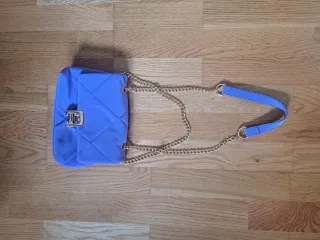 Bolso pequeño con un diseño acolchado y detalles metálicos. - Cierre con broche. - Cadena dorada para llevar al hombro o cruzado. - Asa adicional de material sintético azul.