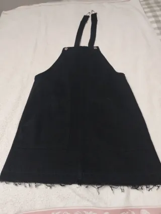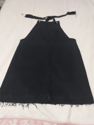 Pichi vaquero de color negro. Tiene tirantes ajustables con cadenas. - Diseño moderno. - Bajo deshilachado.