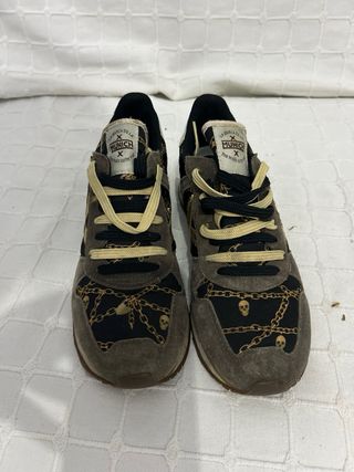 Zapatillas Munich con un llamativo estampado. - Diseño con cadenas y calaveras. - Combinación de colores negro y dorado.