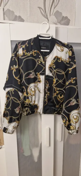 Bomber con un llamativo estampado de cadenas y motivos barrocos en contraste de colores. - Diseño con cremallera frontal. - Puños y cintura elásticos. - Forro interior.