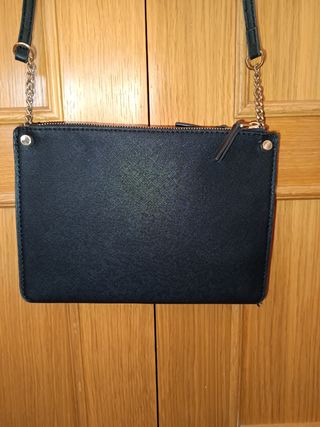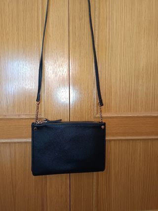 Preciosa bandolera negra, ideal para el día a día. - Bolso de hombro pequeño y ligero. - Asa de cadena y asa larga de hombro. - Cierre de cremallera.