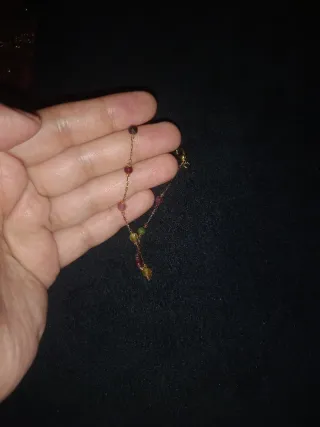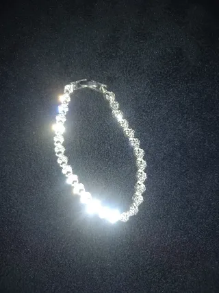Pulsera elegante y ligera, perfecta para darle un toque especial a cualquier outfit. Está en muy buen estado y queda genial tanto para uso diario como para ocasiones más especiales. Ideal si buscas un detalle bonito sin complicarte. - Acabado brillante. - Cierre de mosquetón. - Cadena extensora para ajustar la medida. Precio negociable