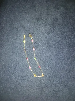 Elegante pulsera golfi con un diseño delicado y adornada con pequeñas piedras de colores. - Cadena fina. - Cierre de seguridad.
