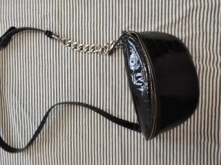 Bolso de mujer con un diseño moderno y elegante. - Acabado brillante con textura. - Cierre de cremallera. - Asa de cadena metálica. - Correa ajustable para llevar cruzado.