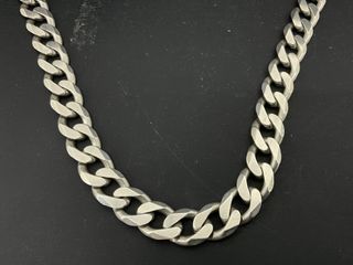 Bonita cadena con eslabones anchos fabricado en Plata de 925 milésimas. Mide aproximadamente 51 centímetros de largo y pesa 22.94 gramos. La cadena permanece en un estado general muy bueno sin signos aparentes de uso. Las imágenes corresponden exactamente al artículo anunciado. #greendogSilver