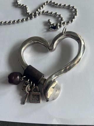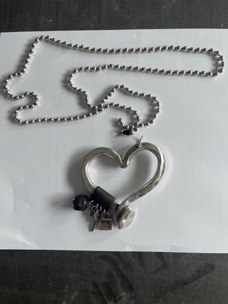 Colgante con forma de corazón y cadena. - Diseño abierto en forma de corazón. - Incluye varios charms decorativos.